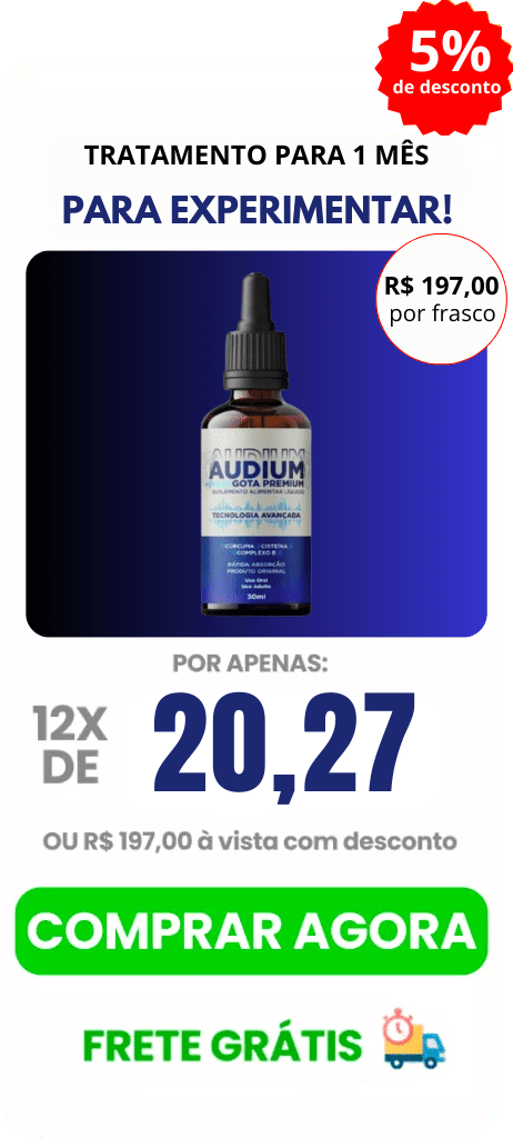 O Audium Gotas Premium® é um composto 100% natural aprovado pela ANVISA, que proporciona a reversão dos problemas de zumbido no ouvido (tinnitus) e ajuda na melhoria da audição.