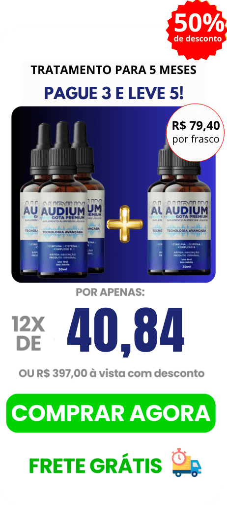 O pacote mais vendido é o de 5 meses de tratamento, que te ajuda a melhorar em até 5x mais sua audição, auxiliando na redução do zumbido de ouvido e proporcionando resultados duradouros. Além de possuir 65% de desconto, recomendamos sua escolha porque esse é o tempo em que observamos os melhores resultados no tratamento dos problemas de audição.